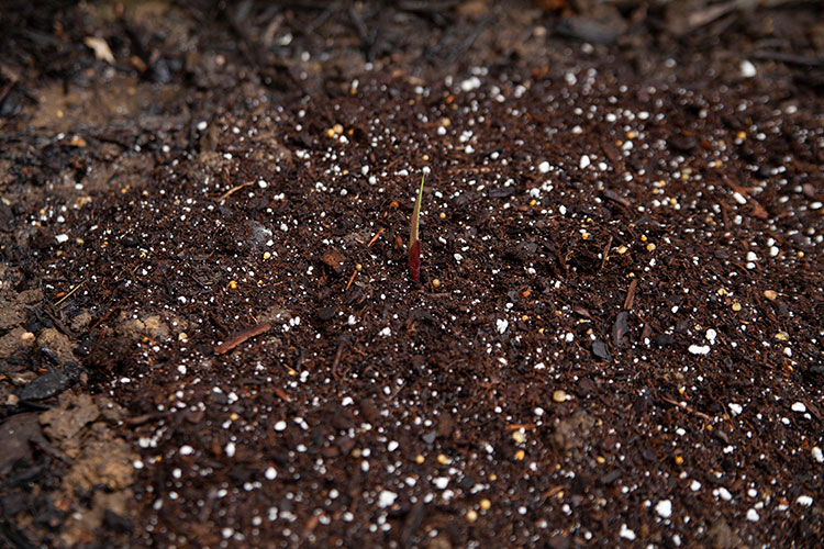 The first dahlia to pop up on day 3 and the growth on day 7.