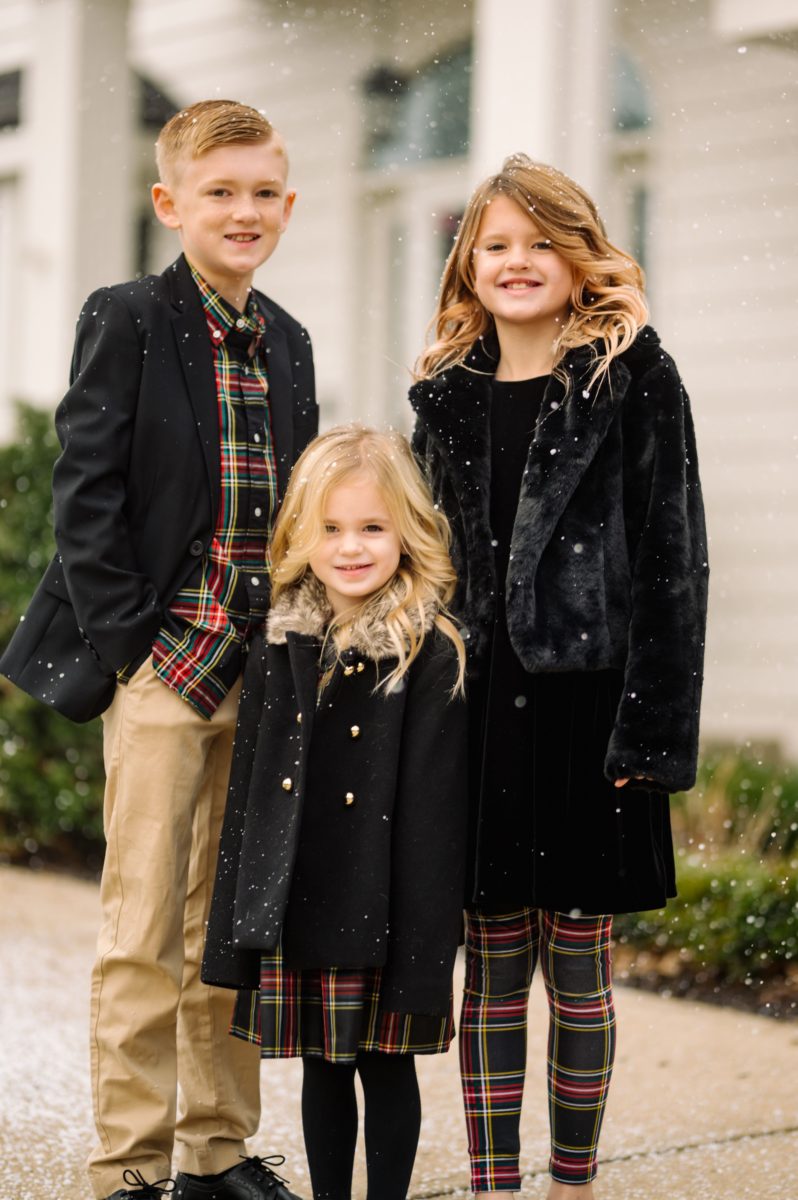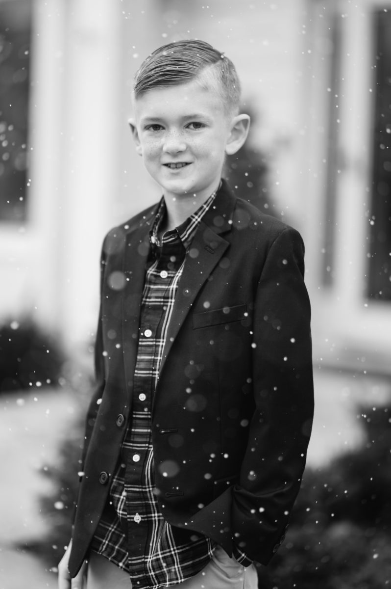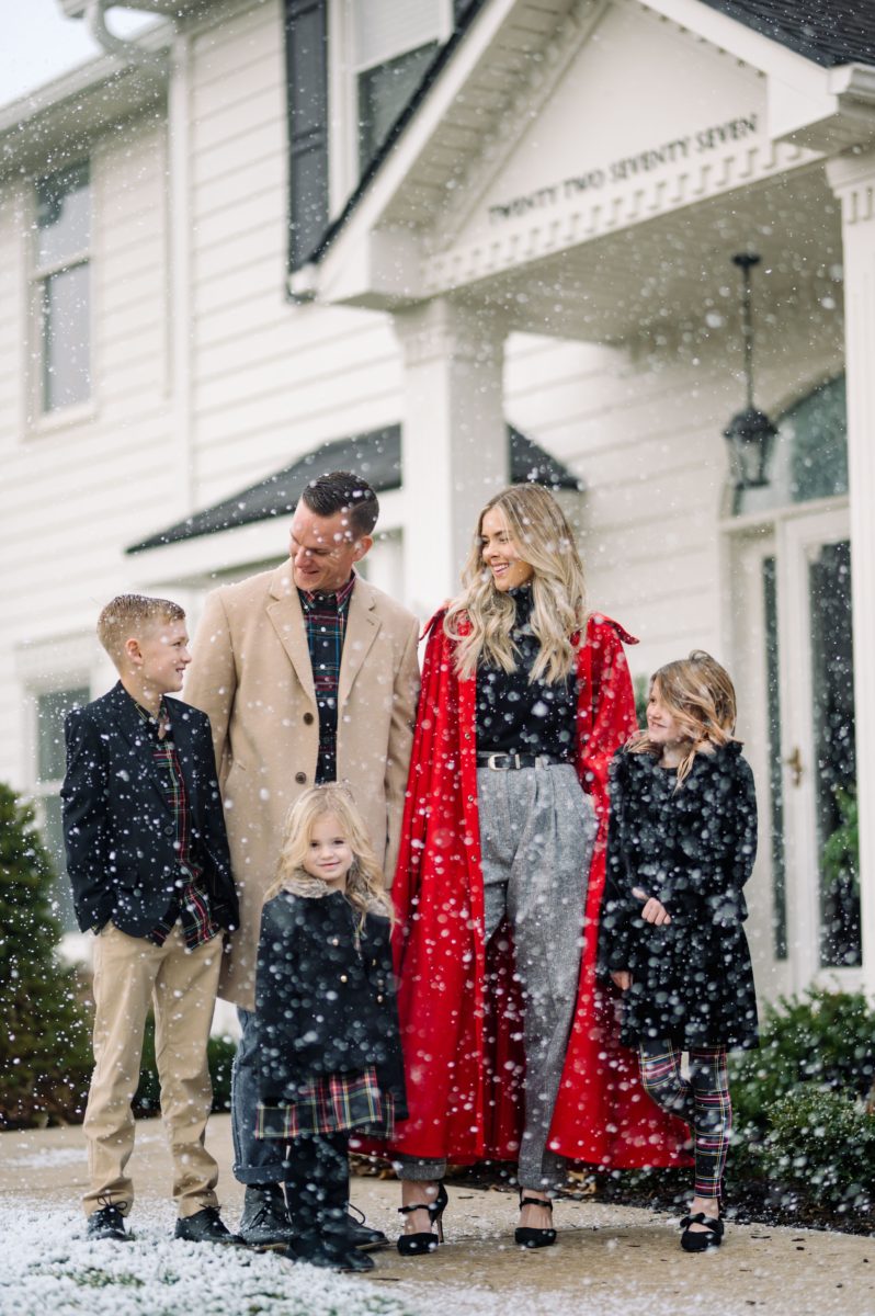 Happy Christmas from the Hefners! We decided to go classic with our family pictures this year. Like decorating, I’m loving all things nostalgic and warm as we close out a year that has been difficult for so many. I’ve always wanted snow pictures, but it’s never really worked out Justin Salem Meyer got his hands on a snow machine, and I think the effect is just as wonderful as the real deal. I had no idea that snow machines are actually soap! The kids thought it was so fun. Scroll to the end to see the one shot Micah is most concerned with getting every year.