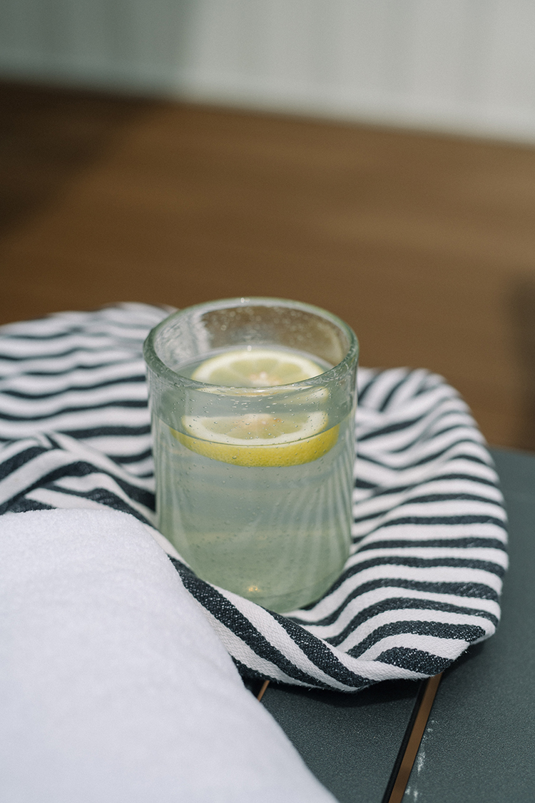 OFFER A REFRESHING BEVERAGE: Serving something special adds to the fun break from the norm. Even if it’s just some slices of lemon in a sparkling lemonade. Using real glasses and a pretty tray makes it all the more luxurious.
