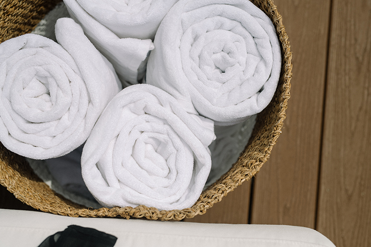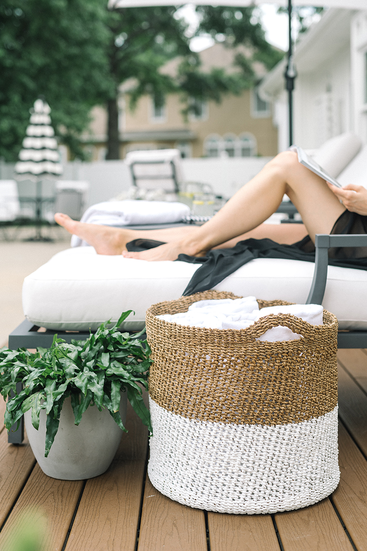FRESH TOWELS: Most people will bring their own towel, but it’s nice to have some on hand when someone forgets or a towel ends up in the pool. This big basket is a beautiful way to house extra towels and would be great for blankets by the fire in the fall too.