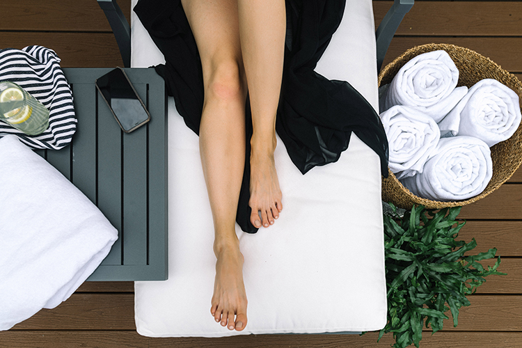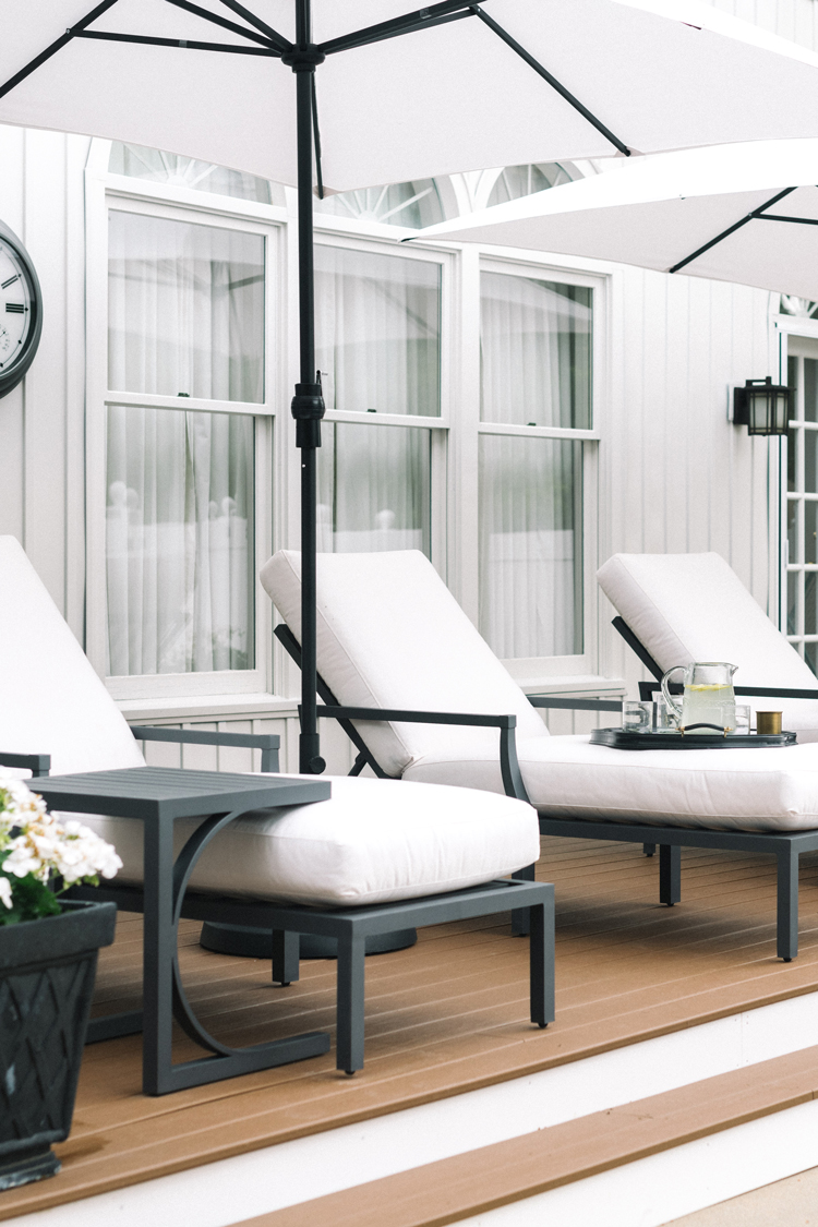 As a mom of littles living a suburban life, I’m not frequenting resorts heck, I don’t know that I can say I’ve ever been to a resort! but that doesn’t mean I can’t create that feel for myself and my guests. With the new deck I was really excited to take advantage of the additional area for sunning. This is the west side of the house and it gets amazing sun all afternoon. People don’t want to necessarily dine or converse in this spot, but getting tan or laying under an umbrella with a good magazine and dipping into the water once in a while is quite the life. Here are some tips for creating an environment that both you and your guests can’t help but relax in.