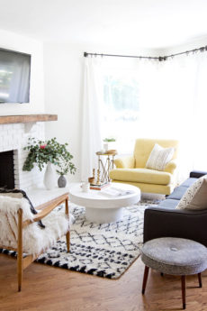 The first two questions I like to consider when decorating a space are “what do we have to work with?” and “how does/should the space function?” Laura’s living room is really long and narrow, which can be a bit more difficult, but I knew the confines of the space could be a shining point. And how does the space need to function? Along with the typical needs of a family with young kids, Laura and Craig planted a church last fall and their house is hustling and bustling with gatherings several nights a week. While design is important to them, they need the space to function for everything from adult meetings of 5 to small groups of 20, with gangs of children running around too.