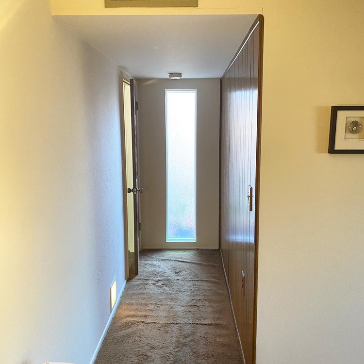 We pulled up the original carpet and laid these beautiful, cork floors. They are very true to the style of the house, went in pretty easily, and will hold up well. The Hutchisons had a wonderful, arched window that was being brought down by the dated draperies, bars, screens, and film. After talking with the homeowners were were able to take off the bars, screen, and film. The amount of light and the clarity the film had a pink tint to it was incredible! The original drapery track worked great, so we kept that and simply replaced the old fabric with these velvet drapes from Lowe’s. There’s a quick tutorial in my Instagram stories, but we used drapery hooks to hang the curtains on the track in a way that feels very custom. We went with three panels on each side for a fuller look too.