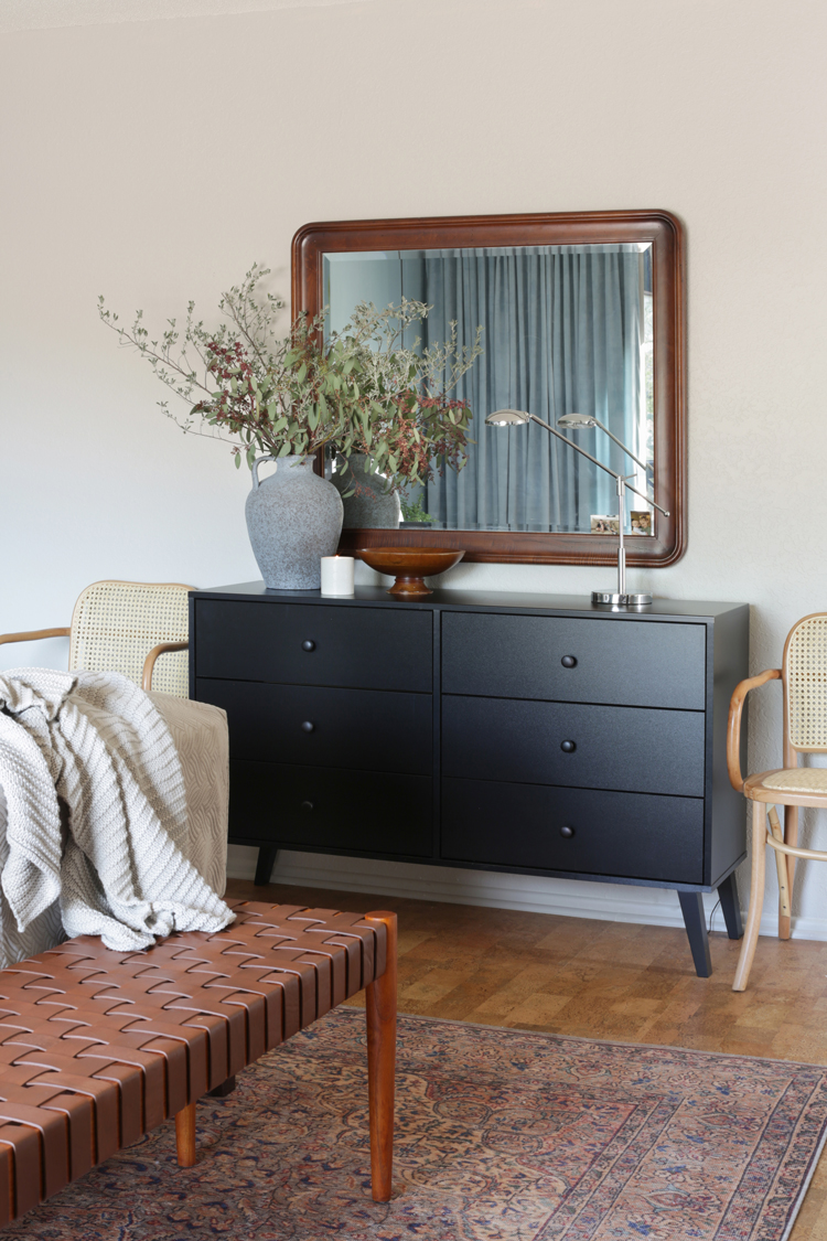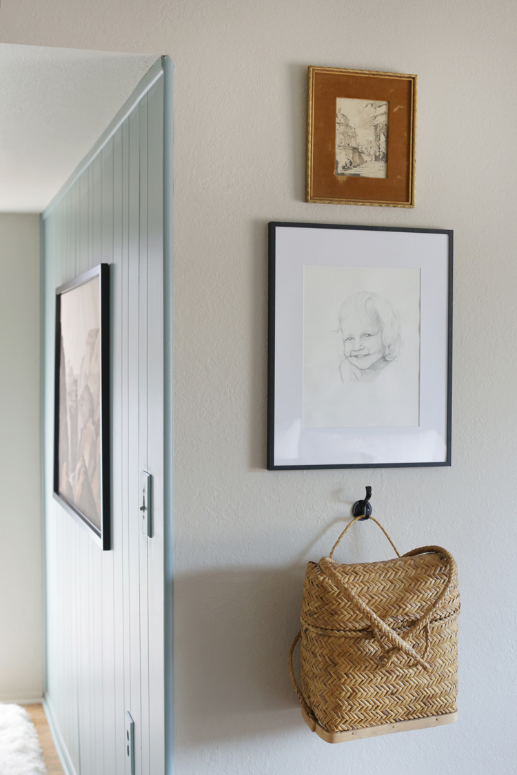 The console is a great little piece to corral jewelry and treasures. One of the things that drew me to this space was the treasures it held before we got our hands on it. That little straw backpack had my heart, and I knew Cori had to have other gems elsewhere. The room is mostly styled with things we found around her home and a few thrift finds I had been hoarding myself. These personal pieces really make the space theirs. The most personal piece of all is the portrait that Victoria, Julia‘s sister, did of Will. Victoria sketched it at the Hutchison’s dining table while we finished the room, and the portrait really felt like the cherry on top of this makeover. I don’t think I’ve ever shared this many pictures, but the before and afters, in progress moments, and details all are so worthy of sharing! Scroll to the end for all of the available sources.