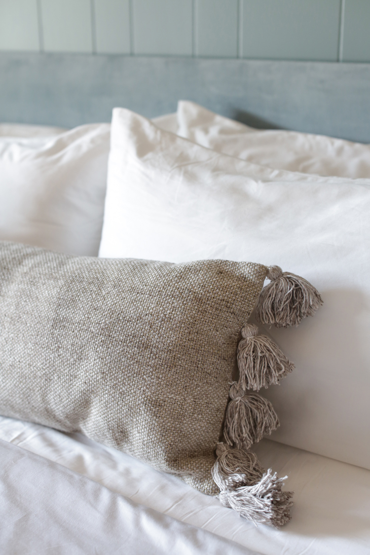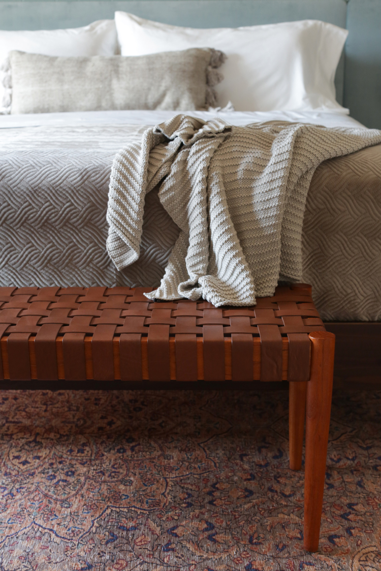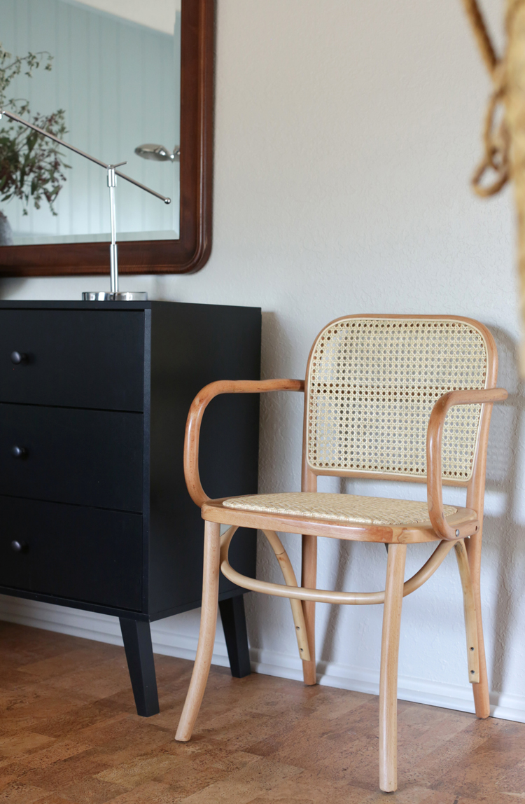As far as the rest of the furnishings, we wanted to give them style and functionality while still keeping things calm and clean. The platform bed and new mattress are such an improvement from their old mattress on the floor did you know you can buy mattresses at Lowe’s? The dresser has a bit more space than their last one and we switched out the hardware it came with for some clean, matte black knobs. We added lots of seating with the linen chair and pair of Bentwoods because the Hutchisons wanted this to be a space their whole family could hang out and read before bed.