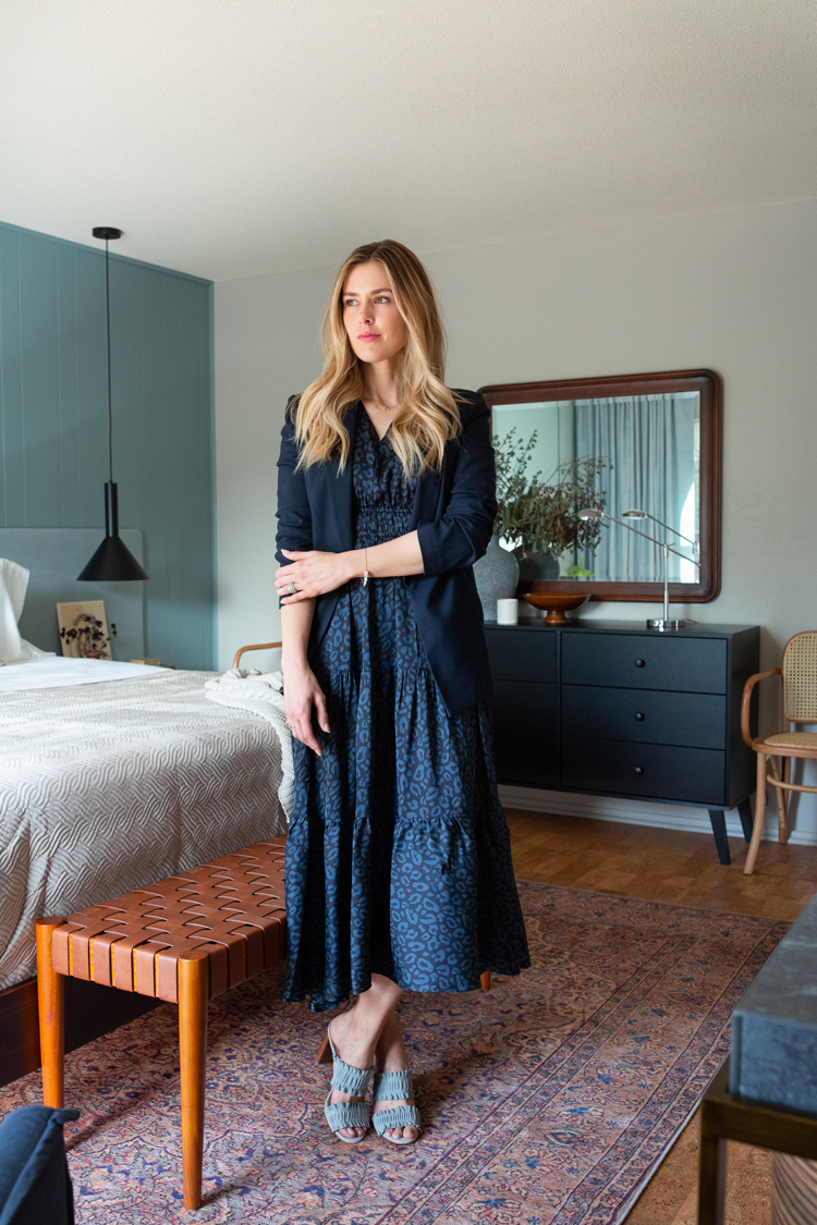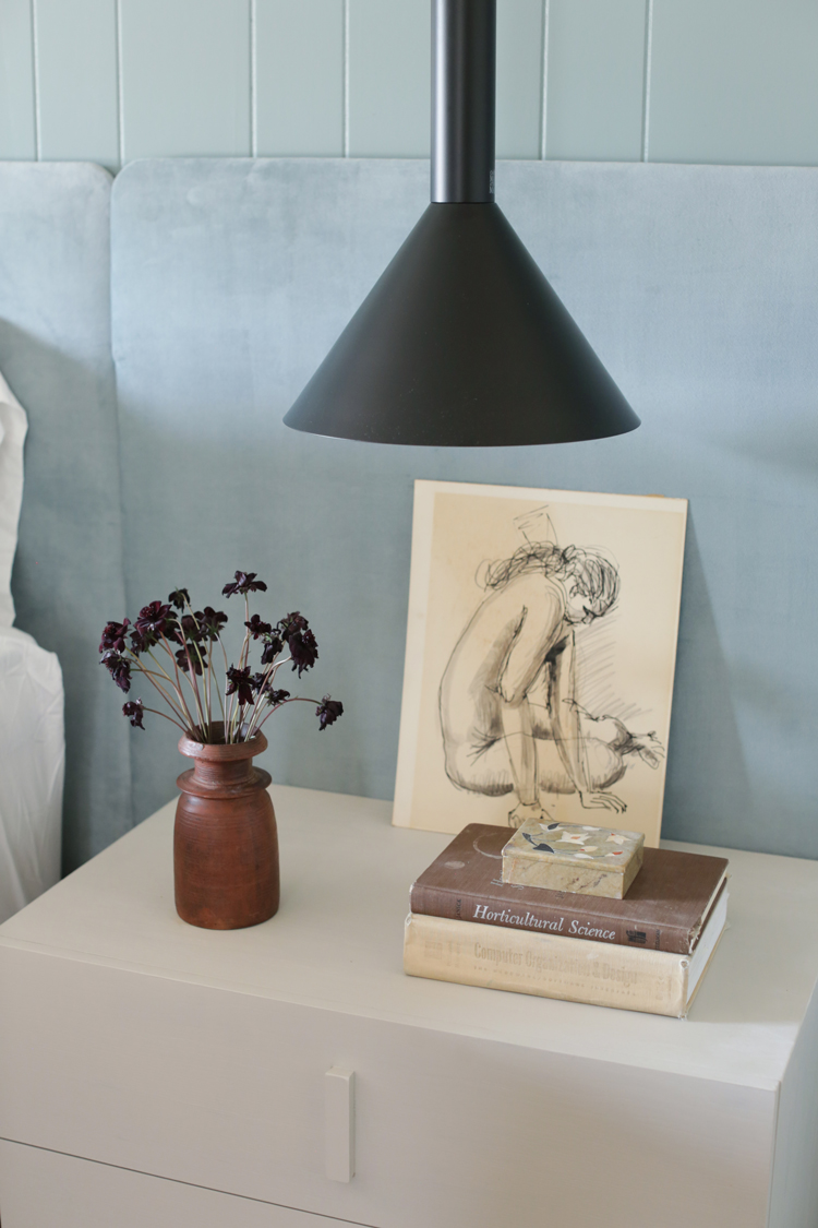 Such a gorgeous transformation. I both of you guys (and Jenny!) and it is so fun to see each of your styles in the room. I attribute the luxe velvet fabric of the headboard and the dreamy fullness of the drapes to you, for sure. I liked hearing your perspective on the color, vintage pieces and nod to the style of the home.