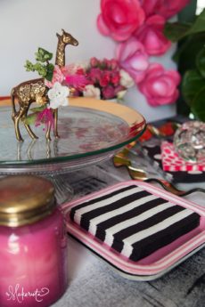 I got the mirror at a thift store for almost nothing, spray painting it and using one of my favorite pens to highlight the faux bamboo. I was so excited to find this bar cart at an antique store for a killer price and even more excited when my sister said she would take it off my hands after the party. With small children and not much space left in our home, it’s just not ideal for us right now. (My husband was so disappointed to hear it wasn’t staying here. Ha!) And it’s nice to know it’s going to someone I can borrow it back from!