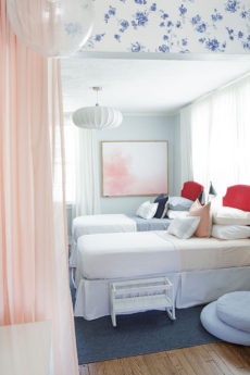 Several readers wondered if the design would have been different if Domino would have been a boy, and the answer is kind of. All of the bones and furnishings would have stayed the same, but the accessories would have gone a different direction. Because Domino was a girl we used things that leaned more feminine, bringing in blush, poppy, and lavender tones in throws, art, pillows, and baby items. These were definitely the colors I initially envisioned with the wallpaper. So part of me hoped that was the way we would end up going. But I have to say, the colors I would have used with a boy look really interesting and fresh.