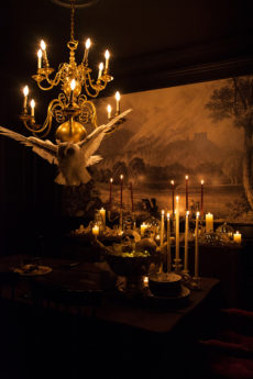 The lavender color in the wallpaper is actually a powder blue that just reads lavender painted on top of the orangey-red. We ended up going with a blue carpet from Karastan for the rug, and pulling more of that out to source if it was a boy felt really good. I love the richer navy’s against the energetic stripes, and that chartreuse lamp has been on my radar for quite some time now…the color and shape are beautiful! I would have brought in a lot more texture and warm wood as well to really give some masculine edge to the more glam elements.