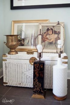 I love it so much that I’ve started spending time in here. While not finished, there’s enough interest to call me to the space for some late night emailing and inspiration searching. Recently I pulled in one of the swivel chairs from the wood room, this side table in from poolside, and added a new beautiful lamp to give myself some task lighting while I wind down before bed.