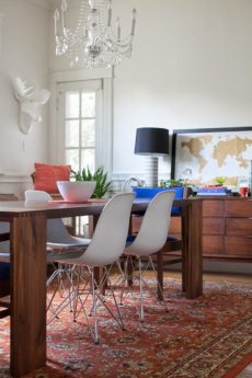 Have you ever noticed that you typically only see spaces in magazines and on blogs during the day? As a blogger, I spend a lot of time and energy making sure the light is perfectly even in a shot: timing my shoots for the best sunlight, using white boards to bounce light, and editing in Photoshop. “Light and bright” is what’s in right now, and while there’s nothing wrong with that, my home has loads of moody color and the sun is only up for so long. The night brings such a different feeling to every space in our home, and the pretty lighting we’ve added gets a chance to truly shine after the sun goes down. The library isn’t complete yet, but it’s always been the most stunning in the evening, when the sconces and chandelier cast shadows on the books and the saturated colors get a chance to play their moodiest role.