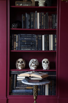 For me fall means metallic. I am not the type to like all of the traditional fall colors…so there are no orange pumpkins sitting around…I do however love the look of copper. I have a few family antique pieces of copper that I have stashed around here and there..including an entire set of copper mugs. My husband definitely leans more toward eclectic styles…and loves the idea of little elements of surprise tucked quietly around…aka a small metallic beaded skull sitting almost year round on a shelf on one of etageres.