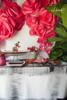 Picking and sticking with a few different colors will always create a more polished look. Orange is not one of my go-to colors, but it’s obviously appropriate for this holiday. It’s great with the graphic black and white and the pop of the yellow in the fireplace. Keeping the plants in play also feels fresh and more lighthearted. The asparagus fern is wild and crazy, which fits the mood.