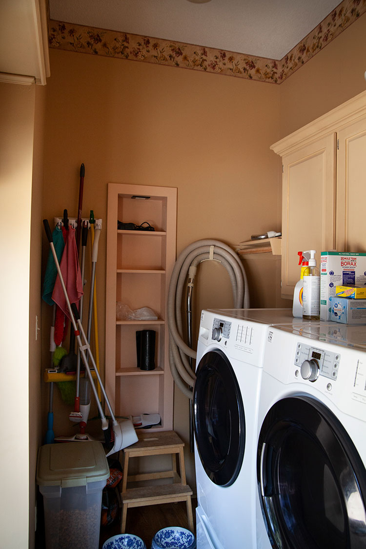 I’m always taken aback when someone says to me “you all are done renovating your house, right?” I forget that I mainly share the spaces we’ve made our own and leave out the ones that don’t have our personal touch yet. We still have several rooms I can’t wait to get my hands on, and the laundry room is one that looks the same as it did they day we moved in. It’s right off the kitchen, which we renovated several years ago. While it didn’t bother me much when then, the minute the kitchen was finished it looked so sad and tired! That’s the thing about renovation, the way you feel about spaces become relative to the ones next to them.