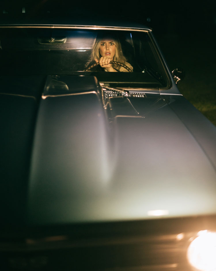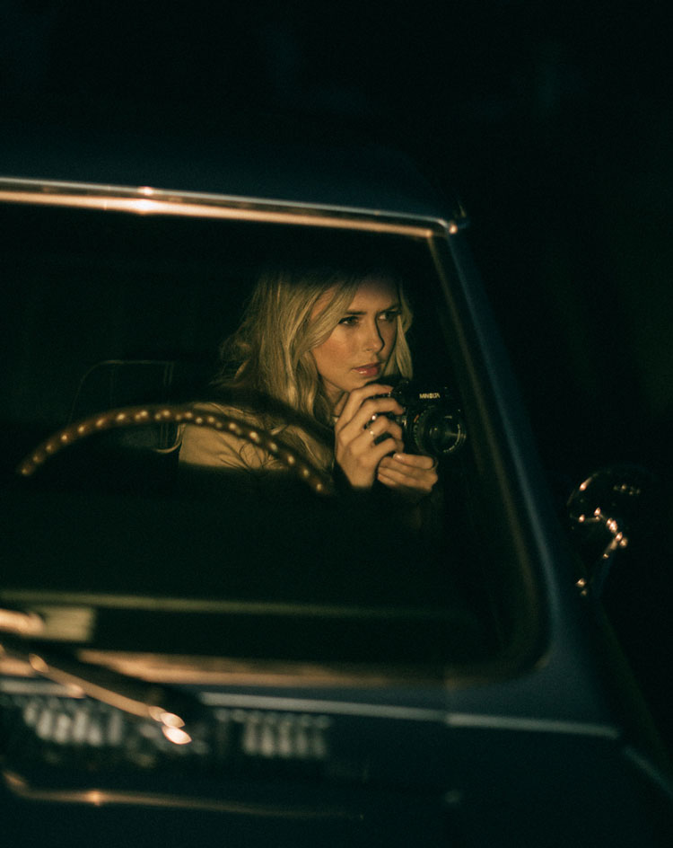 We wanted a car for two of the covers, and luckily my sister’s boyfriend, Justin, has access to a lot of them. I ended up falling for Steve’s ‘66 Chevelle, and it set the tone for the hair, makeup, and wardrobe. The late 60s/early 70s had me collecting images of Brigitte Bardot, smokey eyes with big lashes, soft curls, trenches, turtlenecks and scarves, and shorter hemlines. It’s an era I don’t typically lean towards, but that’s what I love about style – you never know what’s going to feel fresh and exciting next, and this feels that to me.