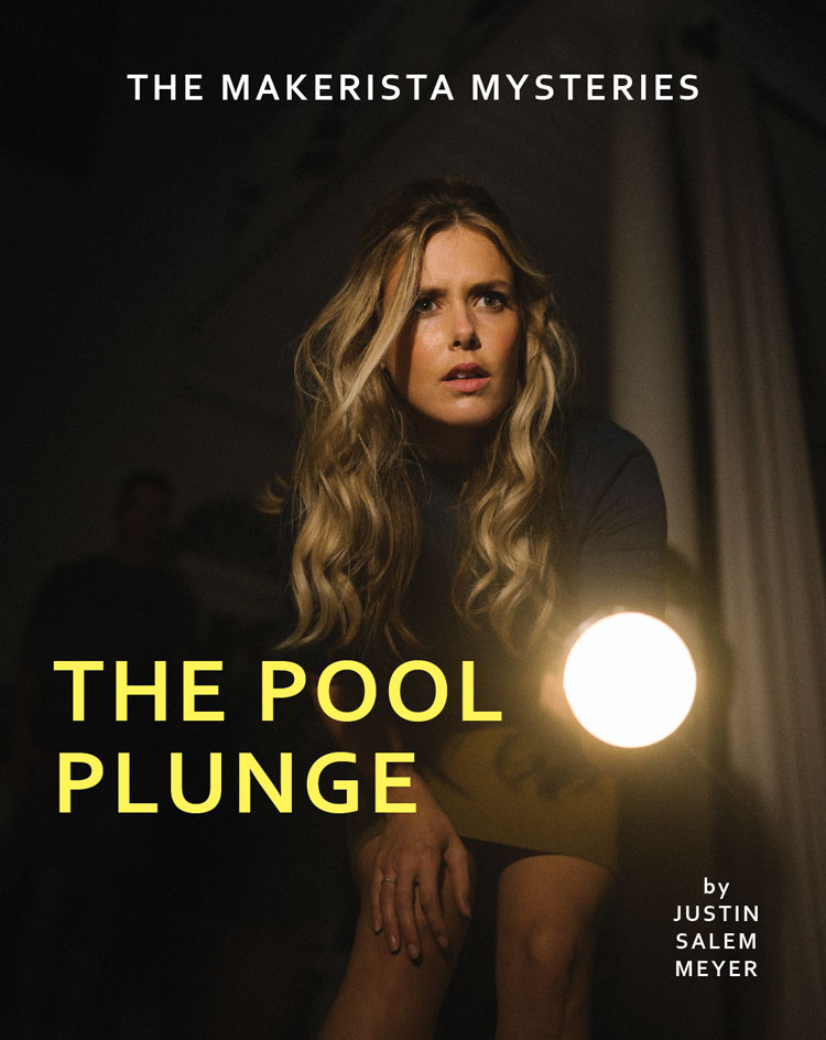 In the midst of the library story Justin said “what if you ended up in the pool?” My gut reaction was “no way,” but then I thought, “let’s give it a go!” Micah and I got the kids in bed, and we headed out back around 9:45. We thought about tying it into the third story, but it ended up being its own. By 10:30 we were back in the house, dried off I’m not sure if those shoes will see another wear, but it was worth the casualty! and Justin was editing photos. By 11:30 we had all of the images and called it a night. It’s amazing what can be created when you work well together and have a clear vision. This spin on Nancy Drew was much more simple than what I typically do – no tedious decorating necessary – but the impact and fun had was off the charts!