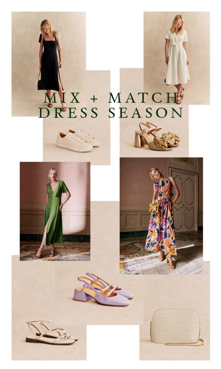My favorite season is upon us – dress season! Nothing is more easy and breezy than a dress as the weather warms. I love to wear them anywhere and everywhere. These looks are effortless for errands or pool cover ups in tennis shoes or flat sandals, and you can dress them up with heels and the perfect bag for church, a summer wedding, or a night out. These items from Sézane will be workhorses for me. The quality and comfort is there in every piece! Scroll to the bottom for all of the links here, and some other items I own that would mix and match well together. The whole collection could be packed in a suitcase and take you to just about any event on the itinerary!