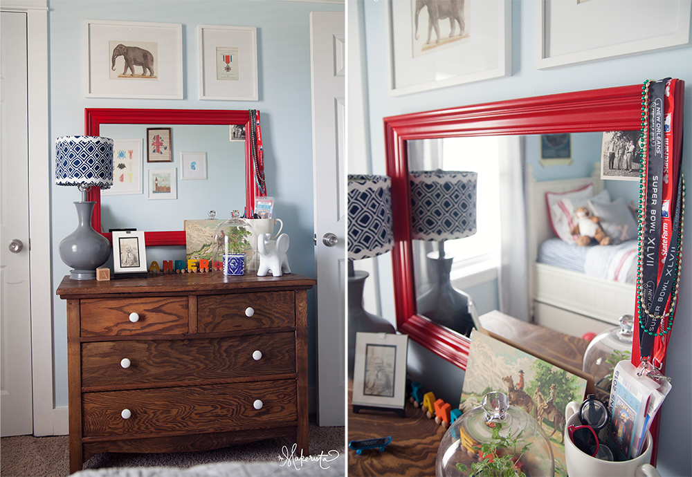 I love Xander's room, Gwen! The dresser definitely looks modernized with what you added to it! Love the red mirror! Xander is absolutely a doll! I love the videos of him rehearsing Bible versus on FB, and thought the verse on his chalk board is precious! Thanks for sharing these pictures and details. I appreciate the website links you added, which makes such easy access for your viewers to find the items! You are so great at what you do 🙂